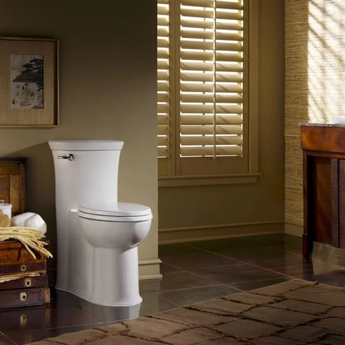 - Part of the Tropic collection, this High Efficiency Toilet delivers higher performance and fewer clogs using just 1.28 gallons per flush. Its one-piece design with concealed trapway is sleek and stylish. The longer bowl and 16-1/2-in PowerWash rim provide greater comfort and bowl cleaning. And its EverClean surface stays cleaner, longer.