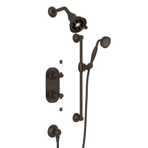 - Kit Includes: AC390 1/2″ Thermostatic Trim; 1440/6 Shower Arm; WI0123 Showerhead; 1301E Handshower Set; R1050BD Thermostatic Rough